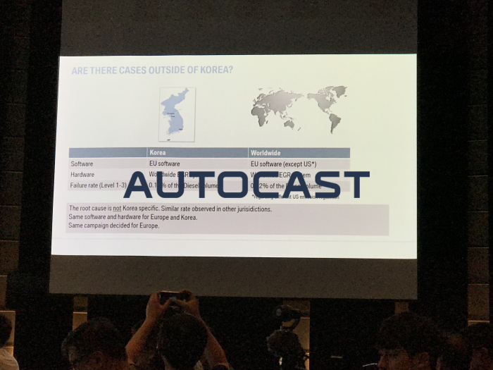 이어 “누수가 있다고 하더라도 모든 차에서 화재가 발생하진 않는다. 불이 나려면 EGR 쿨러 쪽 누수 외에도 추가적인 조건을 충족해야 한다. 예를 들어 주행 거리가 많은 차, 장시간 주행할 경우, 바이패스 밸브가 열린 상태 등이 있다”고 말하며 “근본적인 원인은 하드웨어적인 문제이지 소프트웨어와는 관련 없다”고 강조했다.
