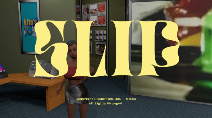 성 차별, 인종 불평등과 같은 사회적 문제를 유머러스하고 담대하게 풀어내는 작가 마틴 심스는 <슬립(SLIP)>을 통해 디지털 시대의 정신적, 육체적인 문제를 자신의 유년기 시절 오마주인 아바타 ‘키타’를 통해 전달한다.