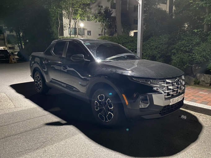 22일 서울의 한 주택가에서 포착된 싼타크루즈는 미국 판매형 모델로 보인다. 북미에서는 차량 앞 펜더에 노란 반사판을 부착할 것을 의무화하고 있다. 만약의 사고로 차가 도로에서 옆으로 정차했을 경우 뒤 따르던 차가 이를 확인하고 2차 사고를 예방하도록 하기 위해서다. 이날 포착된 싼타크루즈 역시 앞 휀더에 노란색 반사판을 장착했다.