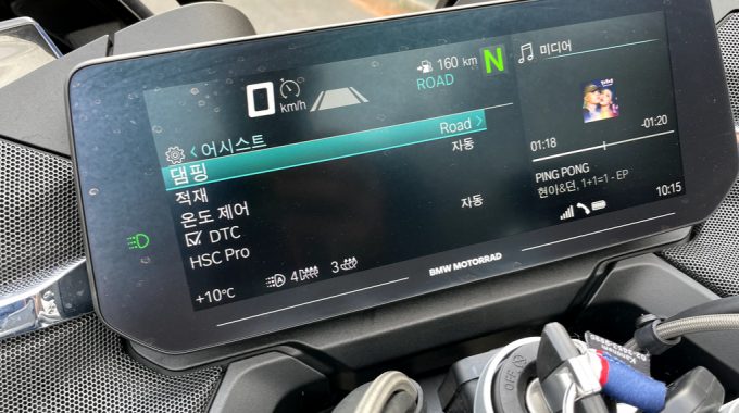 주행 모드를 로드에서 다이내믹으로 바꾸면 느낌이 조금 달라진다. 한없이 부드러웠던 앞뒤 댐핑에 긴장감이 더해진다. 그래서인지 코너에서의 움직임도 차이가 있다. 노즈 다이브와 피칭이 확실히 줄어 불안함이 덜하다. 코너 정점에 이르는 순간, 커다란 무게와 덩치로 인한 한계치가 갑자기 두드러지긴 한다. 하지만 끌 수 없도록 설계된 각종 전자장비가 든든하게 지켜준다. 어차피 R 1250 RT로 격하게 달릴 일은 많지 않다.