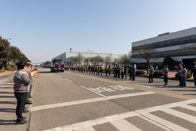 지난 8일 타타대우는 전라북도 군산시 타타대우 본사에서 대형트럭 ‘맥쎈’ 1호차 인도식을 진행했다. ‘맥쎈’ 1호차는 25.5톤 덤프 트럭으로 주인공은 건설 폐기물 수집 및 운반업을 하는 ㈜우리이에스티의 김혁원 대표다. 2017년부터 타타대우의 주요고객으로 특히 이번 중대형 신차 ‘맥쎈’과 ‘구쎈’의 개발 과정에서 고객 자문위원으로 참여했다.