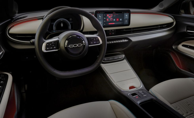 디스플레이 크기에 인색했던 500X와 달리 10.3인치 인포테인먼트 디스플레이를 탑재해 무선 카플레이와 안드로이드 오토를 지원하며, 바늘 대신 7인치 디지털 클러스터가 다양한 정보를 전달한다.